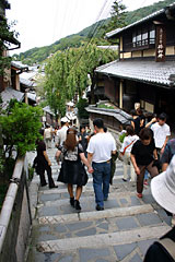 ホテルにチェックインした後,まずは清水寺へ。五条坂というところまでタクシーで移動したのですが,タクシーの運転手さんが,清水寺に入るところにぴたりと付けなくてもいいですか,というようなことを聞いてきました。なんでもお彼岸なので車がめちゃくちゃ混んでいるらしい。たしかに近づくにつれて車がとても混んでいました。 地主神社(縁結びの神)では,よほどお参りしようかとも思ったんですが,カップルばかりで邪魔しちゃいけないと思ってやめときました(^^;)。清水寺を出たあと,三年坂,二年坂と下りながら,一年坂はあるんだろうかと思いながら歩いていましたが,後で出てきました。手持ちのガイドブックには一年坂だけ出てこないんだけど,なぜなんだろ。 人は多かったですね。清水坂とか,竹下通りかと思うくらい人が多かったです。 ★があるものは,拡大画像を見ることができます。 |
